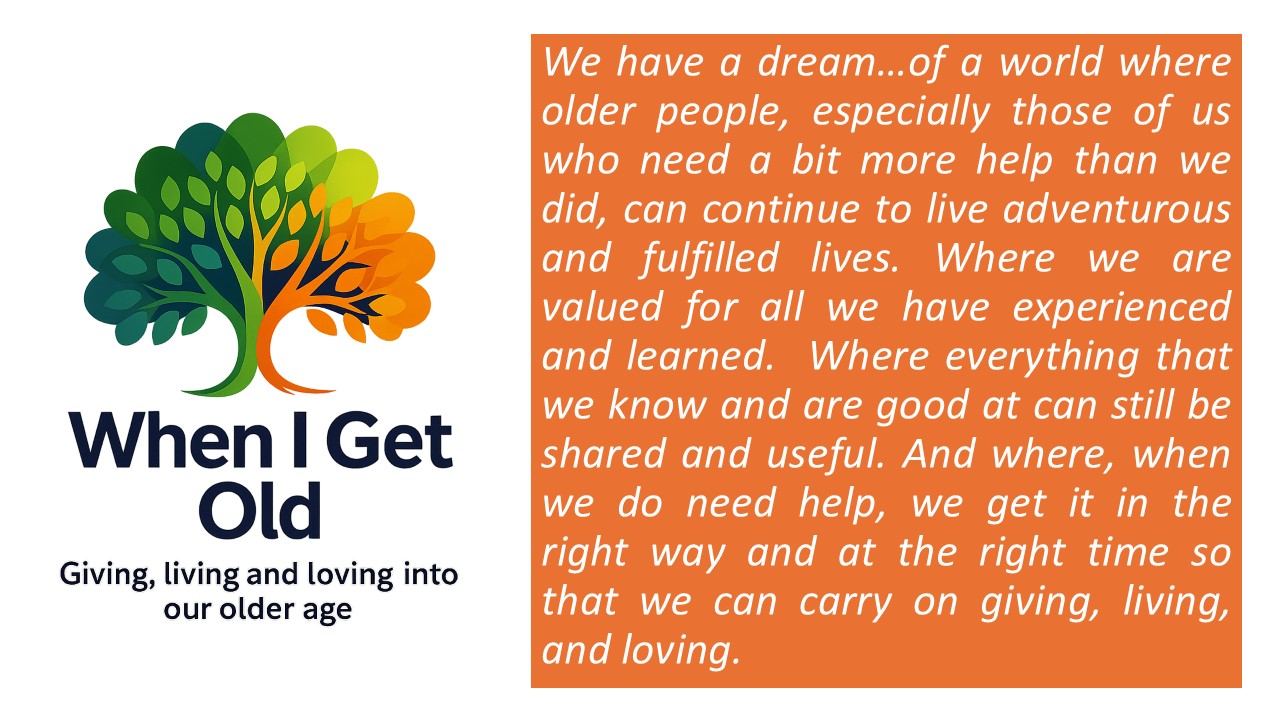 I am the co-founder of a new charity called When I Get Old , a movement for change that brings together older people, people thinking about ageing and organisations. Its aim is to create more options for people who will draw on social care and support in later life.